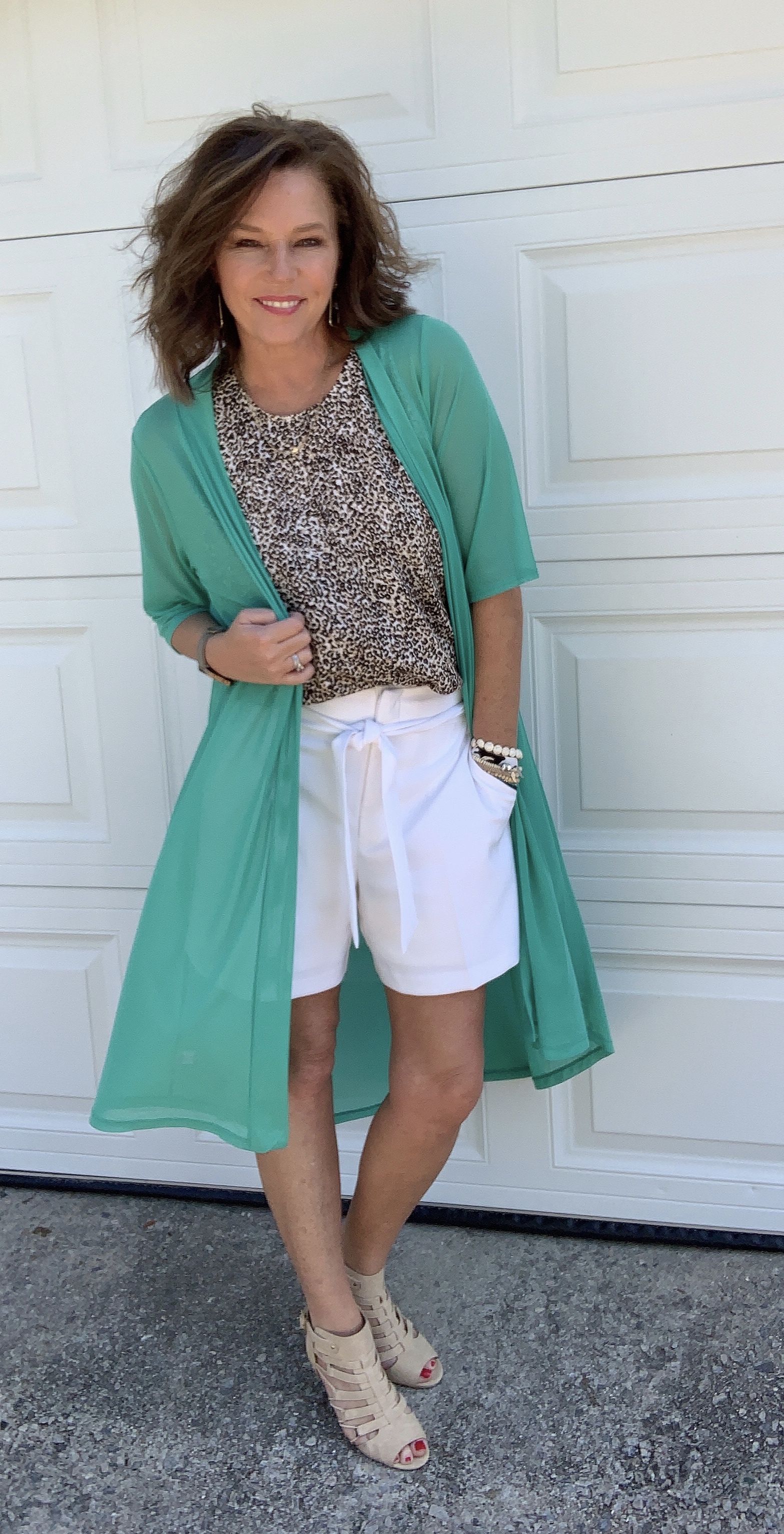 I wrote in a post this week about using color with leopard print, so I wanted to focus on the green today. I got this cute duster from Tee For The Soul, it’s a boutique that I have come to adore! They have the cutest clothes for any size. Check them out HERE. For a workwear or date night outfit add a pair of white jeans or slacks to this and you will really stand out. Doesn’t the green really pop with the leopard?